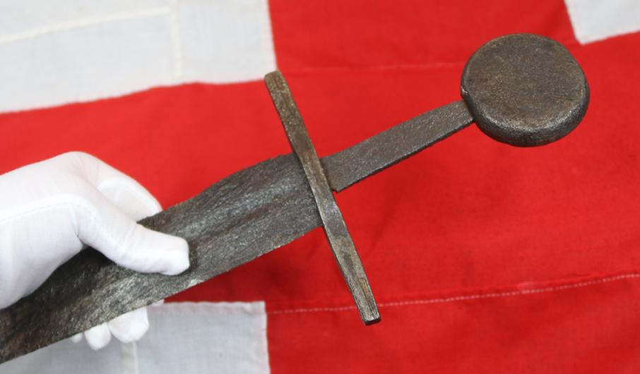 Anglo-Norman period, a Single-Handed knightly sword, made during the 12th to early13th century, and used in the early Crusades Period by Knights, such as the Knights of Jerusalem, the Knights Templar, and Knights of St John, created from time of English King Stephen, and used into the reigns of King Henry the IInd, and King Richard Ist, the Lionheart., and potentially for the following century The designs in the making of Knightly swords changed, largely due to combat fashion in many cases, during their periods of use, and it is by comparison of the changes of swords designs and features, compared to other swords of accepted and known age in their manufacture, such as from recorded burial sites, tombs of knights or historical battle sites, by using highly respected seminal and scholarly works such as Oakshott’s defined categories, that the dating of such weaponry is acknowledged as most reasonably accurate.
