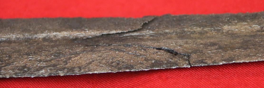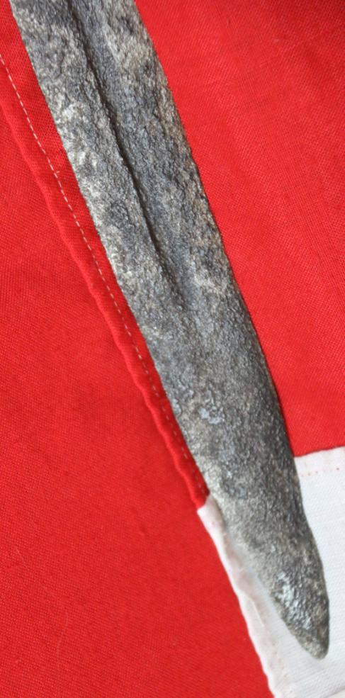 The Type XI was distinguished by Oakeshott by having a slender blade, generally long in proportion to the hilt, with a very narrow fuller running within a few inches of the point. This type has generally been considered to belong to the period of c. 1120-c./1200–1220 AD, but research following the work of Oakeshott has given a much earlier possible date of employment and confirmed that the sword was still used during the fourteenth century. Since so many swords of this typology were discovered in rivers or buried, often due to the corrosion, they present spatulate or rounded points, but this specimen still has the tip of the sword present. Crossguard mobile. Almost every weapon that has survived today from this era is now in a fully russetted condition, as is this one, because only the swords of kings, that have been preserved in national or Royal collections are today still in a relatively good state and condition. However, compared to many currently in the Royal Collection this could be considered fine and above average. This sword will be accompanied by a complimentary wooden display stand. It could also be enhanced by affixing to a rectangular bespoke display panel.