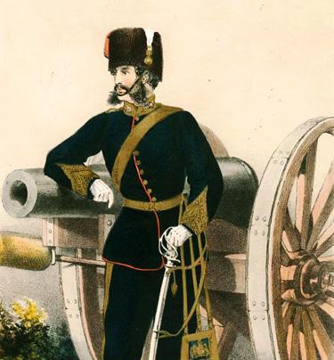 Ammunition Column. These are representative types of the men who are concerned in the transport and distribution of ammunition. They are the sergeant-major, the gunner, the trumpeter, the sergeant, and the driver, and all are armed with revolvers, and certain of them with swords and rifles. There are two classes of ammunition columns. The first is attached to every division, as well as to the Corps Artillery and to the corps troops attached to the Army Corps, and brings up the ammunition reserve for all arms, the ammunition waggons feeding the batteries, and the small-arm carts supplying the infantry, while there are reserve waggons and carts for both. The other class of ammunition columns forms the ammunition parks, which consist of three sections, and are intended for the supply of the whole Army Corps and the cavalry brigades.