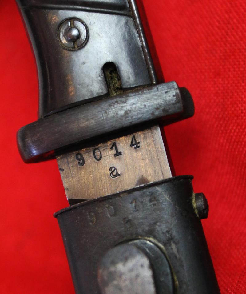 A Superb Fully Blued Mid War Period K98k German Mauser K98 Rifle Bayonet, Dated 1943, Matching Scabbard and Bayonet. A Superb, Original, Used in Service Condition, K98 Bayonet By Paul Weyersberg u. Co., Waffenfabrik, Solingen