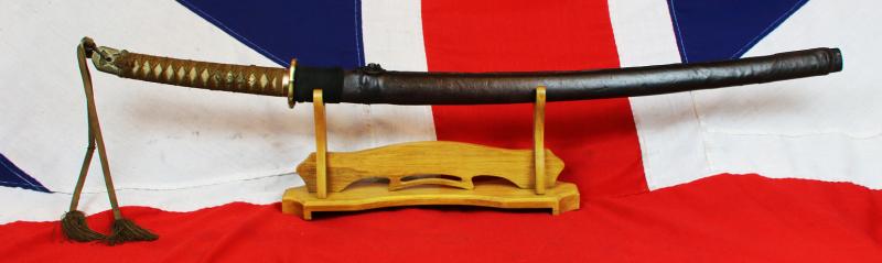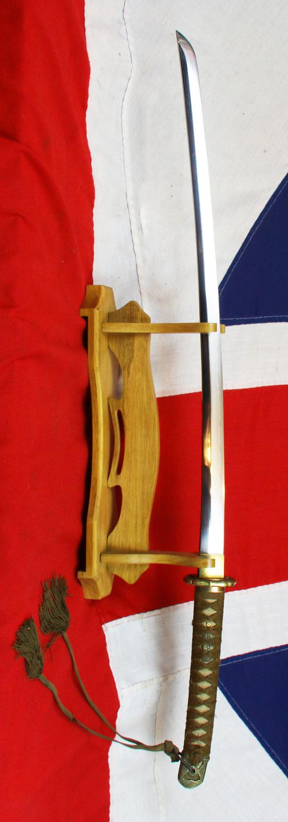 A superb, faultless blade, with fine hamon and in stunning condition. The fittings and mounts are all original and traditional. The original tsuka-ito hilt binding is good, yet with natural aging from its war service.