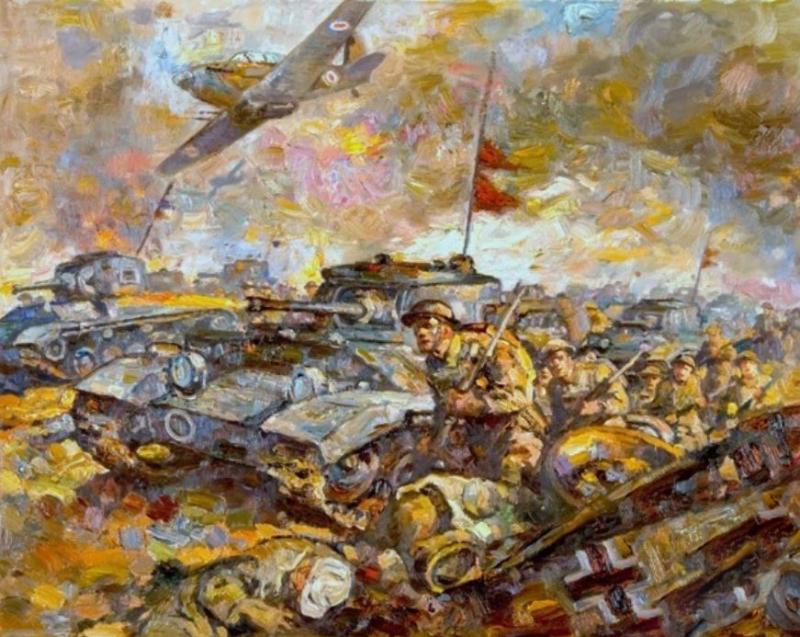 At the outbreak of World War II, the regiment consisted of 20 battalions, 8 regular and 12 territorial. Regular Army Heavy Armoured Brigade (Egypt): 1st RTR & 6th RTR 1st Heavy Armoured Brigade: 2nd RTR, 3rd RTR & 5th RTR 1st Army Tank Brigade: 4th RTR, 7th RTR & 8th RTR Territorial Army 21st Army Tank Brigade: 42nd RTR, 44th RTR & 48th RTR 23rd Army Tank Brigade: 40th RTR, 46th RTR & 50th RTR 24th Army Tank Brigade: 41st RTR, 45th RTR & 47th RTR 25th Army Tank Brigade: 43rd RTR, 49th RTR & 51st RTR During the course of the war, four “hostilities-only” battalions were formed: the 9th, 10th, 11th and 12th. 11 RTR formed part of 79th Armoured Division (a specialist group operating vehicles known as “Hobart’s Funnies”), initially equipped with “Canal Defence Light” tanks, it converted to “Buffalo” (the British service name for the US Landing Vehicle Tracked) not long after D-Day and participated in the assault crossing of the Rhine. Prime Minister Winston Churchill was ferried across the Rhine in a Buffalo from ‘C’ Squadron, 11RTR. The Regiment’s numerous units took part in countless battles in World War II, including the Battle of Dunkirk, El Alamein and D-Day. Field Marshal Montgomery would frequently wear the regiment’s beret, with his Field Marshal’s badge sewn on next to the regimental cap badge, as it was more practical whilst travelling on a tank than either a formal peaked hat or the Australian slouch hat he previously wore.
