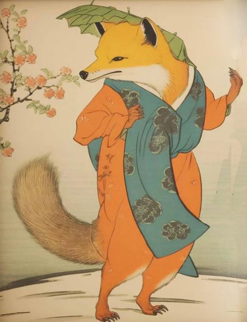 This belief is a popular motif in traditional Japanese art (ukiyo-e prints) and theatre, such as Kabuki, where actors would wear fox masks and elaborate costumes to portray the characters.