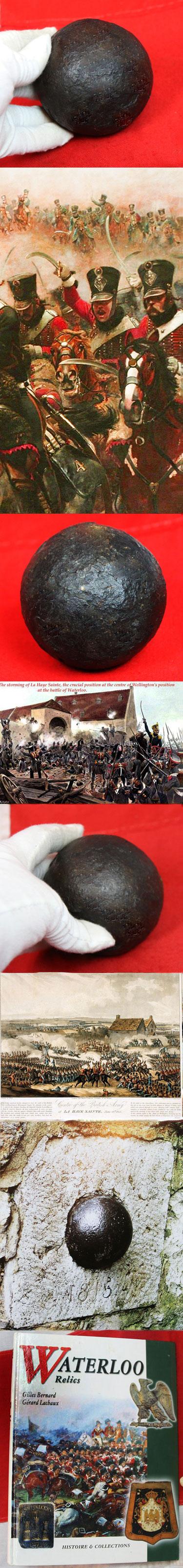 A Superb Original Waterloo Recovered Souvenir '6 Pounder ' Royal Artillery Cannon Ball Fired at La Haye Sainte During The Battle, Recovered Around 200 Yards From The Farm