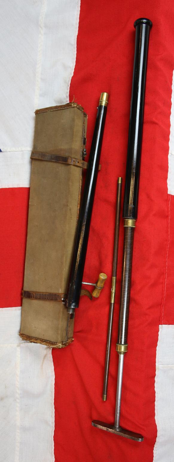 What A Unique And Incredible Christmas Gift This Could Be, A Stunning Mid Victorian Antique Gadget Rifle Gun Stick Fully Set Within Its Original Hard Canvas Travelling Gun Case With All Accompanying Tools. Unique Collectors Piece From Victorian England