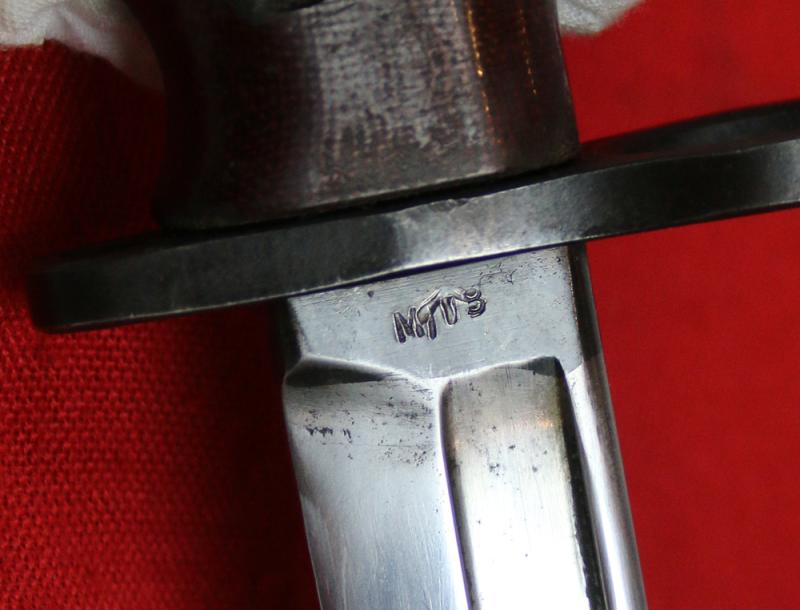The bayonet is marked ‘No 7 Mk 1/L’ on the ricasso, 176,000 of these bayonets were produced from 1944 onwards until production ceased in 1948