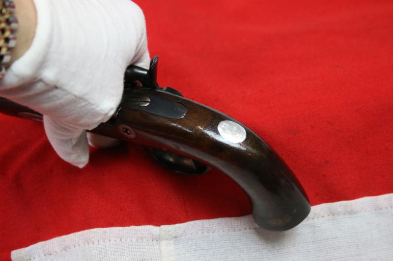 This 'Derringer type of pocket pistol was actually made before the Philadelphia, US, Henry Deringer pistol, by varied makers, but the Henry Deringer pistol was made famous, by being used in the notorious assassination of President Abraham Lincoln in 1865.