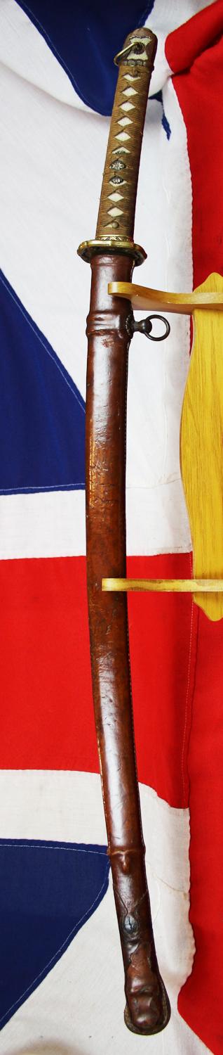 All the mounts, tsuba, seppa etc are very good indeed, as it the original field service combat leather cover on the saya.