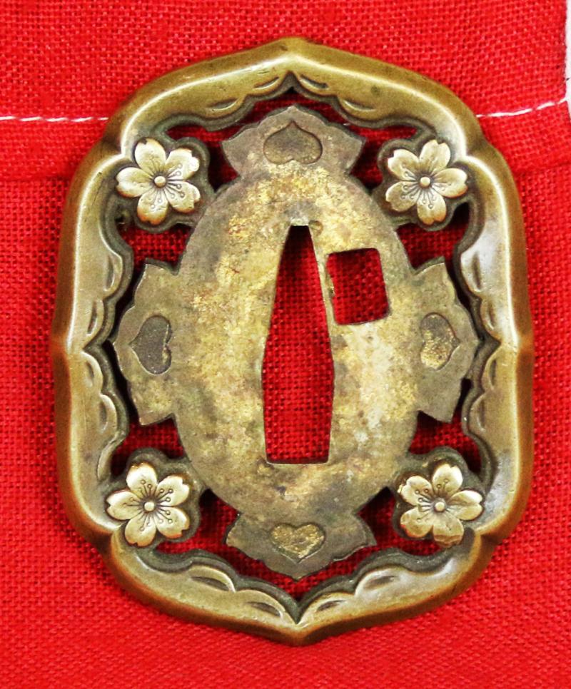 The scabbard for the Type 94 was made of metal with a wood lining to protect the blade. It was often painted green/brown and was suspended from two brass mounts {ashi}, one of which was removable and only used when in full dress uniform. The later type 98 fittings, improved the design a little and disposed of the fitting and use of the second ashi altogether, and used a solid tsuba instead of pierced The fittings on the scabbard were also decorated with traditional cherry blossom designs. The better quality earlier examples are beautifully crafted, as is this one.