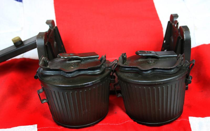 A Super Rare Piece Of German Third Reich Machine Gunner's Kit. A Complete Set of WW2 MG 34/42 . For Both The MG34 and MG42 Light/Heavy Machine Gun. A Gurt Trommel, A Twin Machine Gun Belt Carrier with Two Complete Drum Magazines