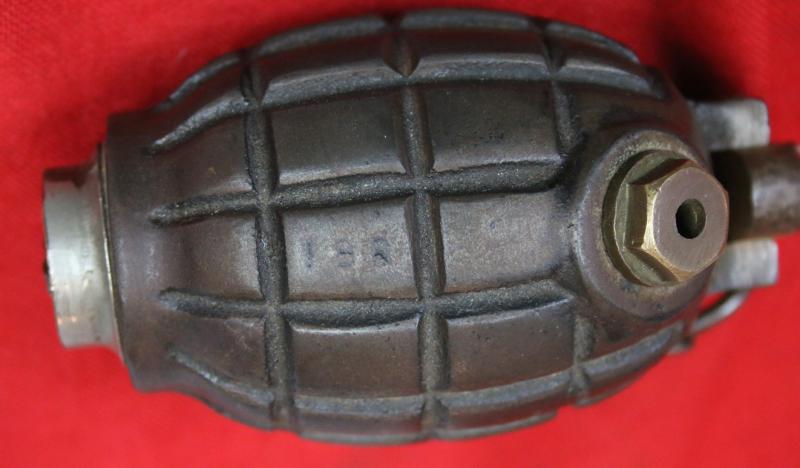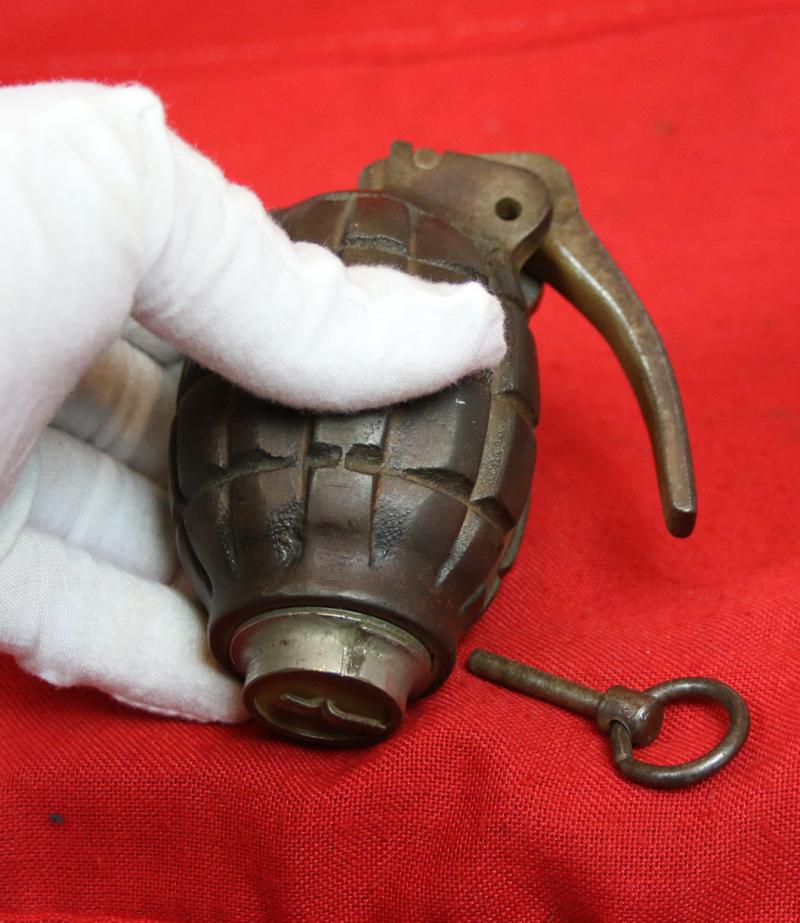 Very nicely marked A super example of these interesting collectables William Mills—a hand grenade designer from Sunderland—patented, developed and manufactured the "Mills bomb" at the Mills Munition Factory in Birmingham, England, in 1915. The Mills bomb was adopted by the British Army as its standard hand grenade in 1915, and designated as the No. 5. It was also used by the Irish Republican Army.