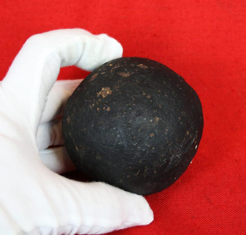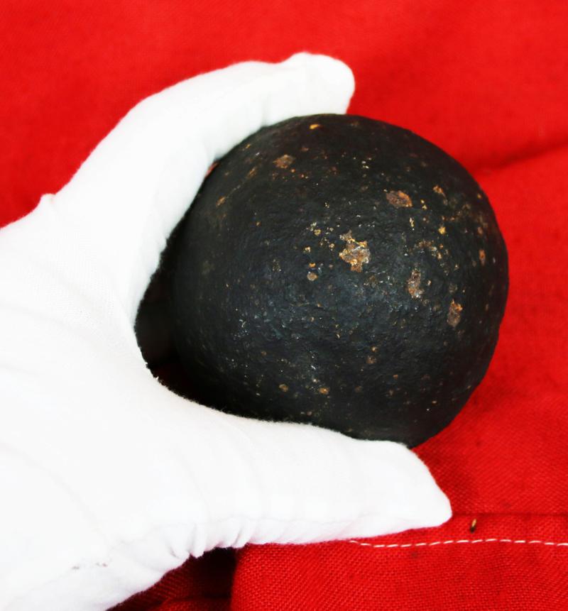 A French Four Pounder Cannon Ball Fired at Waterloo Recovered at La Haye Sainte, the Battle of Waterloo. Approx 3 inches Diameter