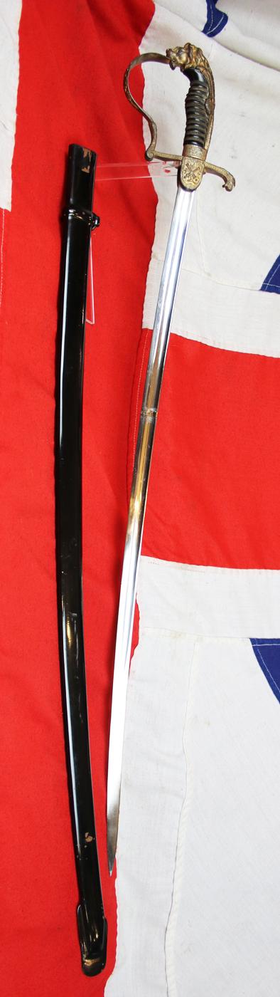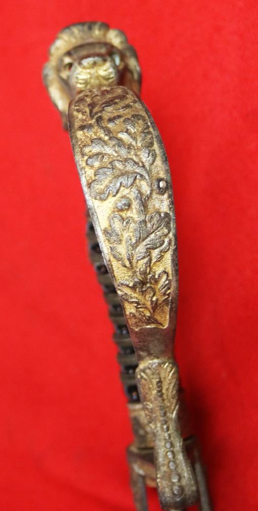 A Good Imperial German Artillery Officer's Sabre With Deluxe Lion Head Pommel Hilt, Lioness Quillon End and Embossed Oak Leaf & Acorn Pattern Design Throughout With Crossed Cannon Quillon.