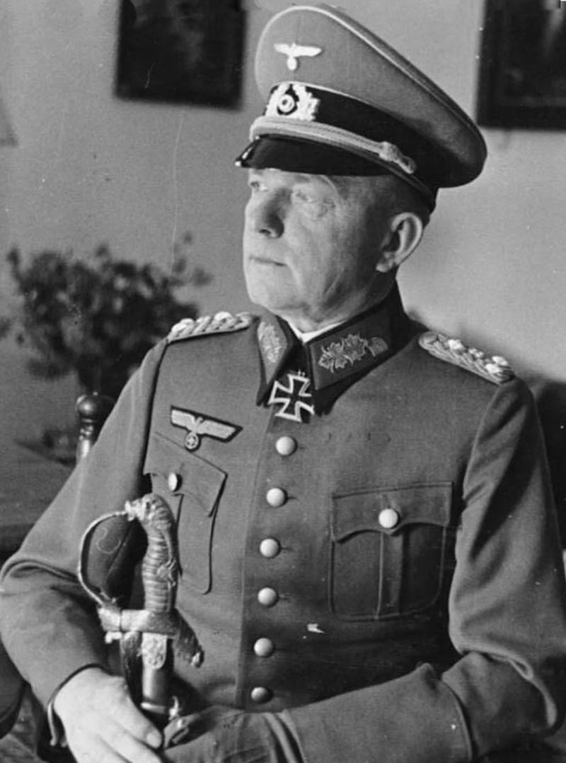 In the gallery we show a 1940 photograph of German general (later field marshal) Ewald von Kleist (1881-1954). Kleist notably commanded a panzer division in Operation Barbarossa in the Second World War (1939-45). In the photo he is holding his exact same Imperial German WW1 sword version.