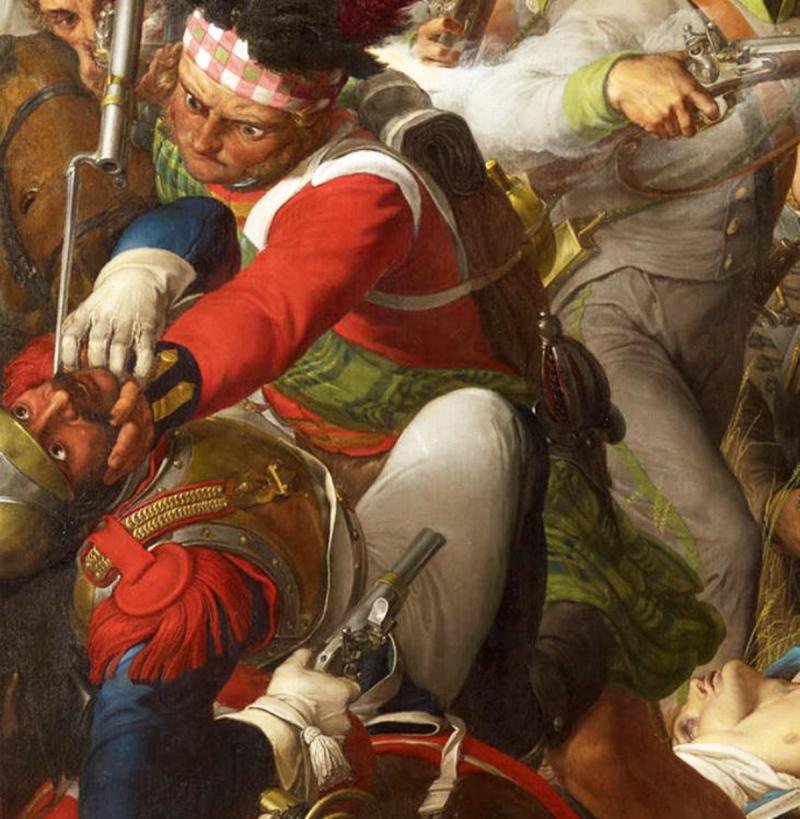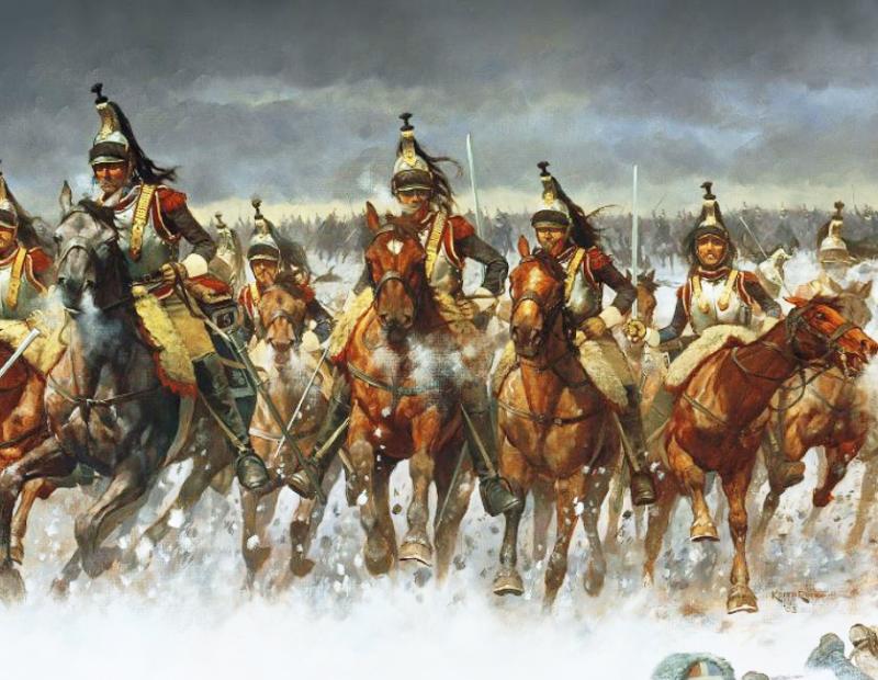 French Cuirassier discharging his pistol on a British square at the Battle of Waterloo.