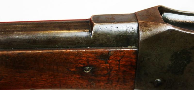 receiver markings, which resulted in the marking being skewed to the right of centre, just as this Martini-Henry has, whereas rifles made originally, from 1876, as a MK II issue would have this marking centered.
