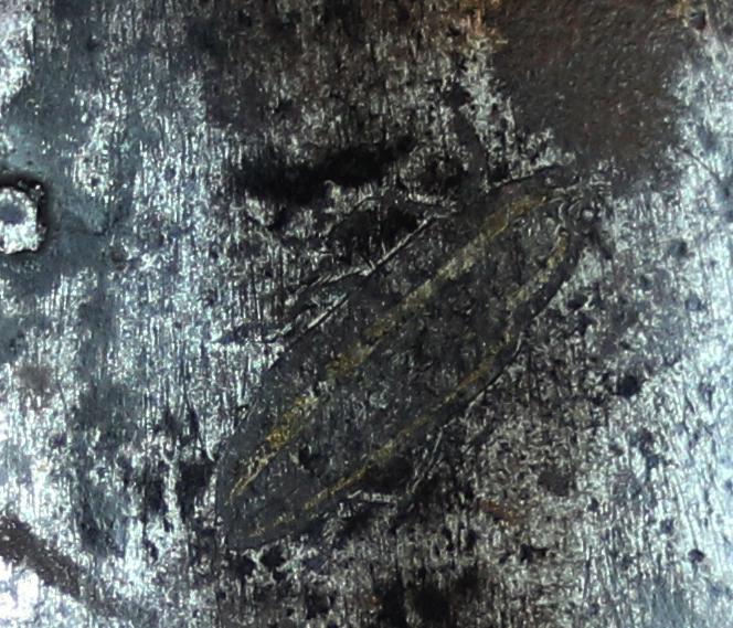 What an incredible, early Edo, original samurai iron jingasa helmet this is. Only a very small percentage of jingasa war hats are made of plate steel but this one is rarer still in that is was inlaid with representation decor of silver insects, some of which are still viewable. including a cricket, a catydid and a superb spiders web.