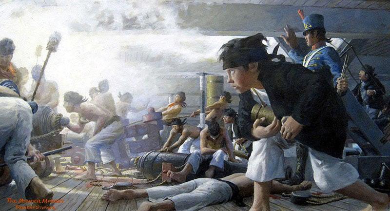 Powder monkeys faced constant danger from cannon fire, exploding gunpowder, and the general chaos of battle.