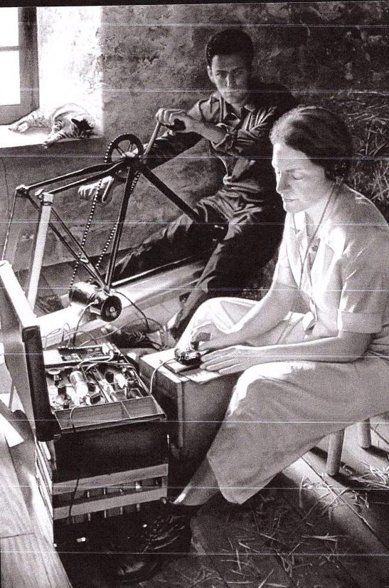 A method to generate power for the secret SOE/OSS agent’s radio transmitter/receiver, when the battery has either lost power, or to save the power of the battery. Still screwed to its bespoke wood mounting block. Overall it is worn as one would expect, and it is just amazing to wonder the missions this fabulous historical rare piece of British WW2 spy equipment has been used, and remarkable that it survived the war and the subsequent 76 years. Ideal for a collector of highly interesting and rare SOE and 0SS spy equipment, or indeed the perfect accompaniment for a collector who has an SOE radio as they really ever survive together. A picture in the gallery is of Virginia Hall of SOE & OSS operating her suitcase radio transmitter, with Edmond Lebrat pedalling a generator, in July 1944 (by Jeff Bass). Using the bycycle chain of an adapted bicycle with pedals instead of using the hand crank handle that ours is fitted with. England. June 1940. Things looked bleak for the Allies after the fall of France and the retreat from Dunkirk, Britain was on the defensive and most people believed that the invasion of England would soon begin. In an effort to take some of the fight to the enemy Winston Churchill authorised Hugh Dalton, the Minister of Economic Warfare, to set up a clandestine organization to help form, supply and run resistance movements in occupied countries. This new Special Operations Executive (SEO) was to be responsible for recruiting and training agents who would then be sent behind enemy lines. (The work of the SOE). One of the most difficult roles which members of the SOE undertook was that of wireless operator.