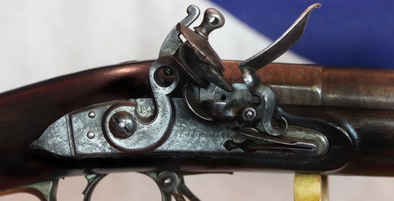 Overall in excellent original condition for age, with good stock patina, reverse side age stock split and just commensurate surface bruising as to be expected for its age and use. A Napoleonic Wars combat service use Stedenmayer officer’s Baker is a very highly prized rifle indeed, and this is an exceptional example as well. It’s patch box contains small useful accessories, including spare flints and cleaning rod attachments, rod thread detached.