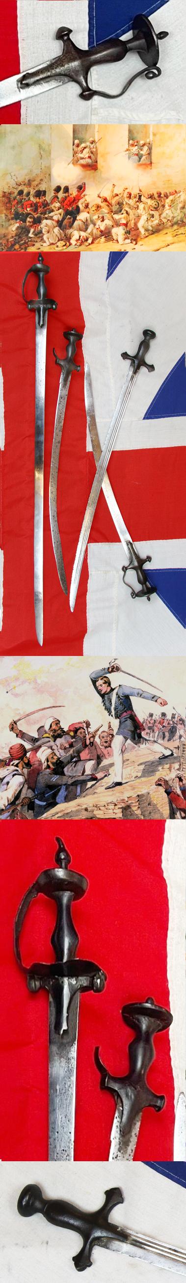 Just Arrived! A Superb, Small Collection of Early, & Historical 18th Century Indian Swords From the Siege and Relief Of Lucknow. Battle Trophies of an Irish Captain Of the 32nd Foot