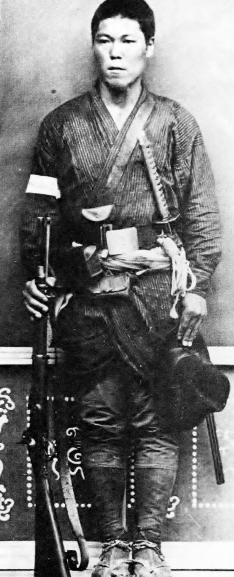The end of the American Civil War in 1865 had made a huge number of obsolete percussion muzzleloading rifles and rifle muskets available on the secondary market from international arms traders like Schuyler, Hartley & Graham. While these guns were being replaced with modern metallic cartridge breechloaders in most of the world, a muzzleloading Enfield pattern rifle or rifle musket was a huge technological advantage against the traditional smoothbore Tanegashima-tsutsu matchlocks in Japan. Other firearms found their way into Japan through western traders as well, ranging from Spencer Carbines to Smith & Wesson Model No 2 revolvers, and everything in between. The traders were only too happy to arm what was looking to be a Japanese civil war. It is also worth noting that there is the possibility that these bayonets, in addition to almost certainly being used by pro-Imperial forces during the Meiji Restoration of 1868-1869, may well have seen use again during the Saga Uprising of 1874 by the anti-Imperial rebels in that province. Photos in the gallery show two 1860’s Japanese anti Imperial samurai rebels armed with an Enfield rifle, with its Yataghan long sword-bayonet upon his belt, and a similar carbine version.