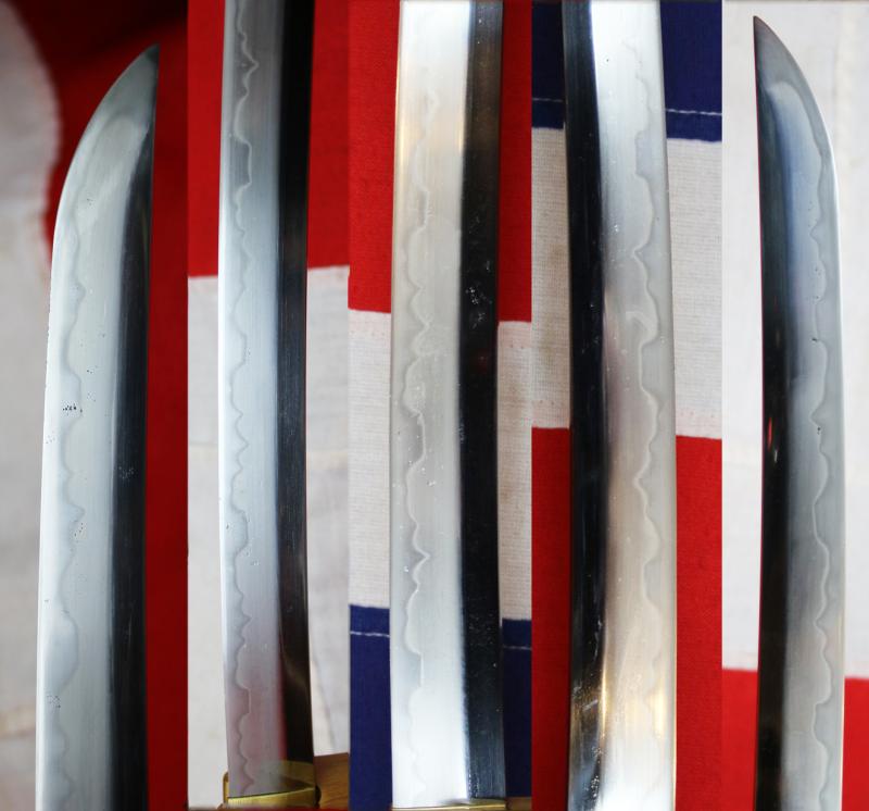 The blade is in great polish showing the beautiful, incredible and elaborate hamon, of midare with areas of the sanbonsugi {three cedar} pattern