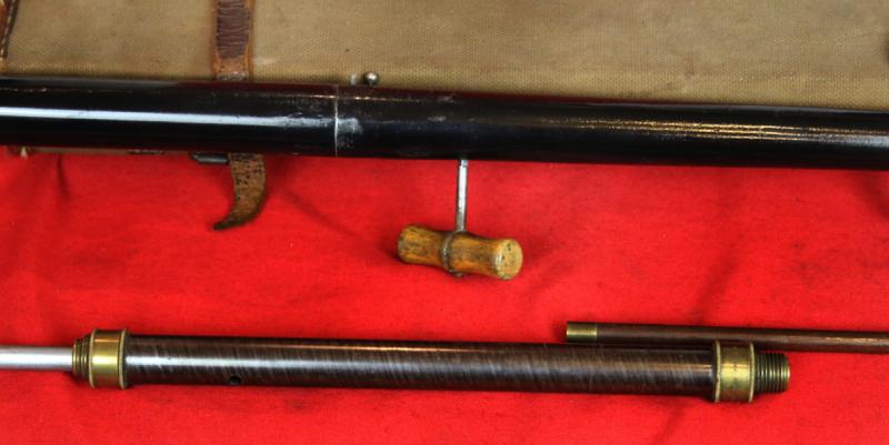 What A Unique And Incredible Piece, A Stunning Mid Victorian Antique Gadget Rifle Gun Stick Fully Set Within Its Original Hard Canvas Travelling Gun Case With All Accompanying Tools. Unique Collectors Piece From Victorian England