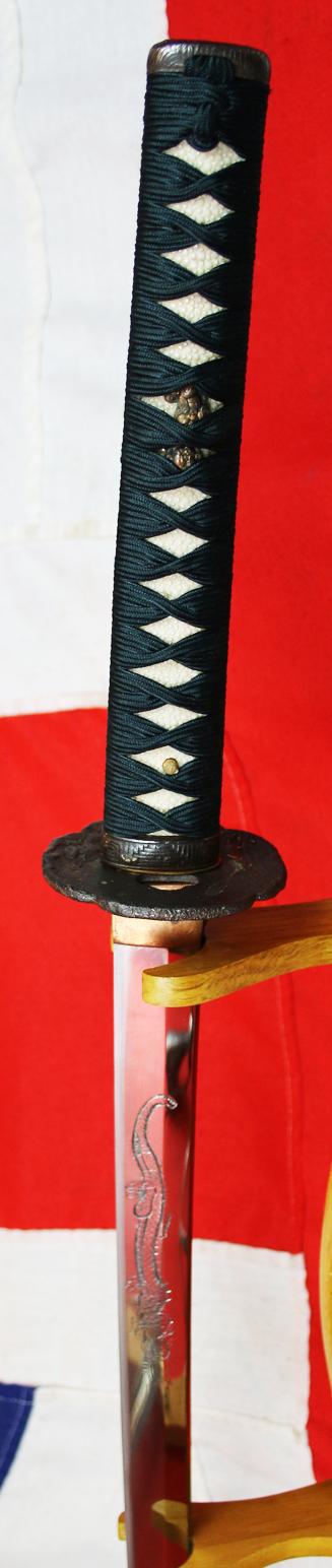 A Stunning, Antique, Edo Period Circa 1660 'Dragon Horimono' Shinto Horseman's Katana. With A Carved Horimono Blade of a Dragon. With a Superb Suguha Hamon That Transforms With Choji Elements At The Top Section