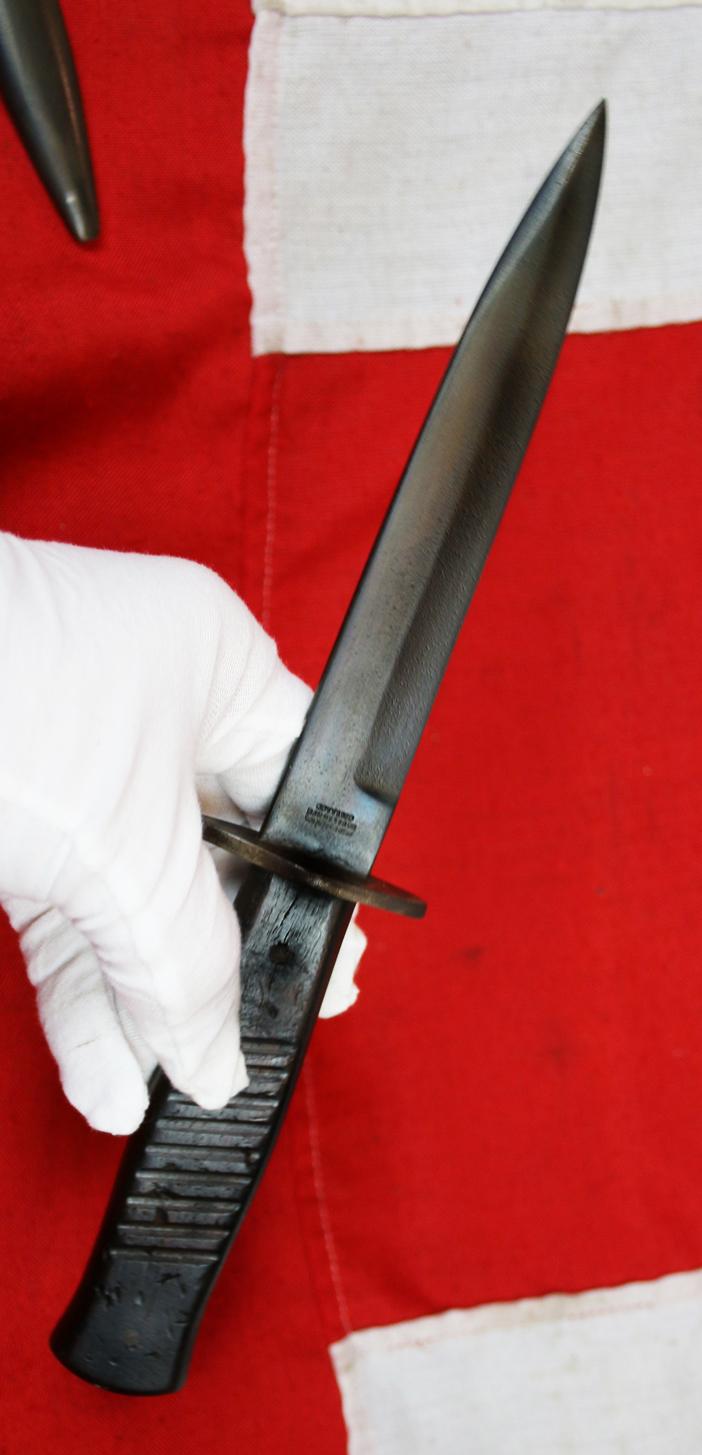 These knives filled the need for a reliable hand weapon in the brutal close-quarters combat of trench raiding, where reloading a rifle was difficult, alongside tools like trench clubs and entrenching tools