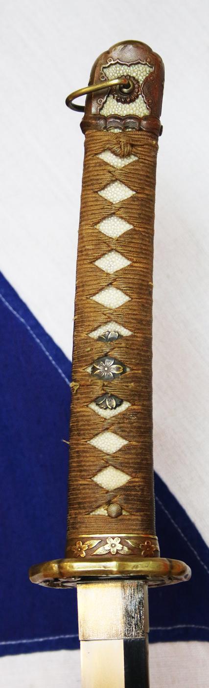 All the mounts, tsuba, seppa etc are very good indeed, as it the original field service combat leather cover on the saya.