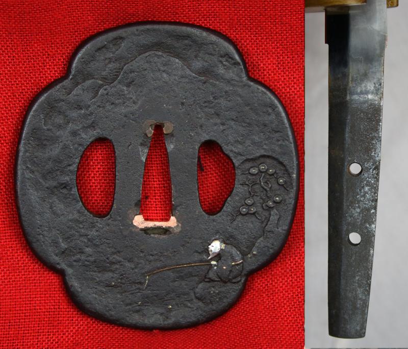 A Simply Stunning A Fabulous Original Antique Shinto Early Edo Period Chisa Katana. Wondrous Pure Gold and Shakudo Mounts Of The Tale of Momotarō, the Demon and The Monkey