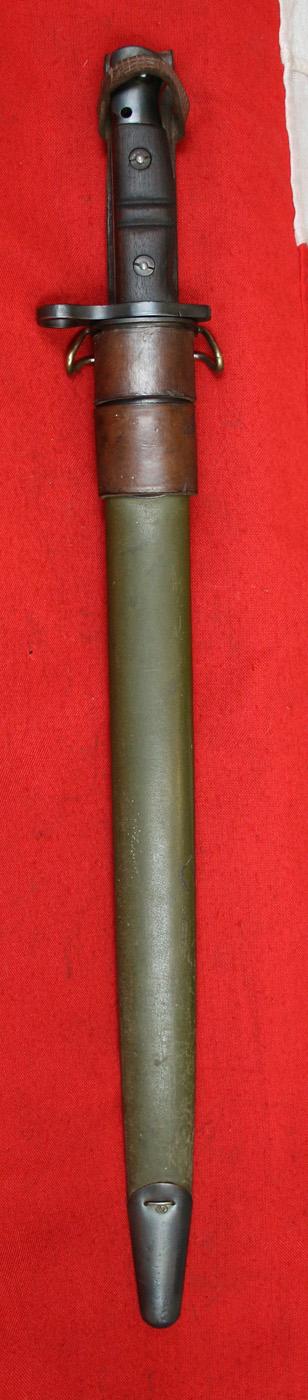 Originally the bayonet design was made for the British in September 1917 by Remington in the US as the 1913 Pattern intended to be issued with the P14 Rifle in .303 inch calibre. However, when America entered the war they changed production of the P14 rifle over to .30 inch calibre, at which point it became their M17 rifle. As the calibre change meant no alteration to the bayonet was required they basically took the unfinished/unshipped bayonets and made them American property by over-stamping the British marks with American marks, thus becoming M1917 bayonets.