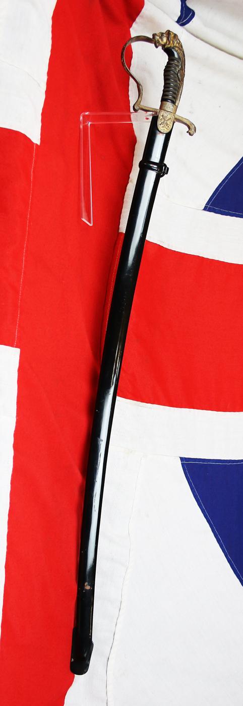A Good Imperial German Artillery Officer's Sabre With Deluxe Lion Head Pommel Hilt, Lioness Quillon End and Embossed Oak Leaf & Acorn Pattern Design Throughout With Crossed Cannon Quillon.