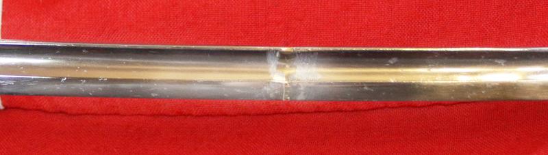 The blade in its working life has had a blade repair in the mid section.