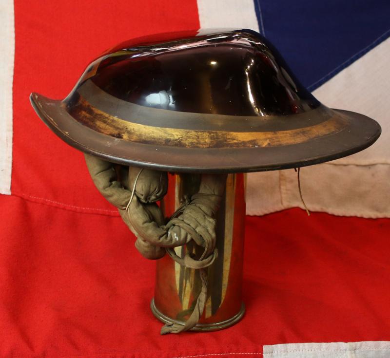Overall in jolly nice condition, the top of the helmet, off centre, has a small impact dent about the size of a pound coin {see photo 4}. Very small age losses to the lacquer