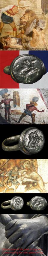 The wearing of the ring was the prerogative alone of Roman citizens or those of high rank and esteem, that some gladiators always aspired to but rarely achieved due to their short life span within their violent craft. However some did achieve such great success and were rewarded with riches, freedom and the right to wear the traditional Roman bronze status ring.